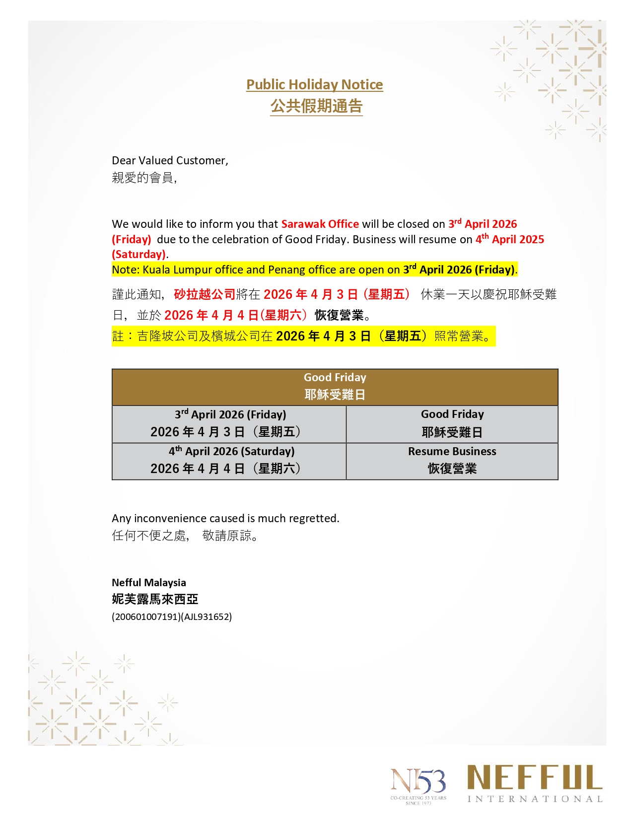 Public Holiday Notice (Good Friday)
